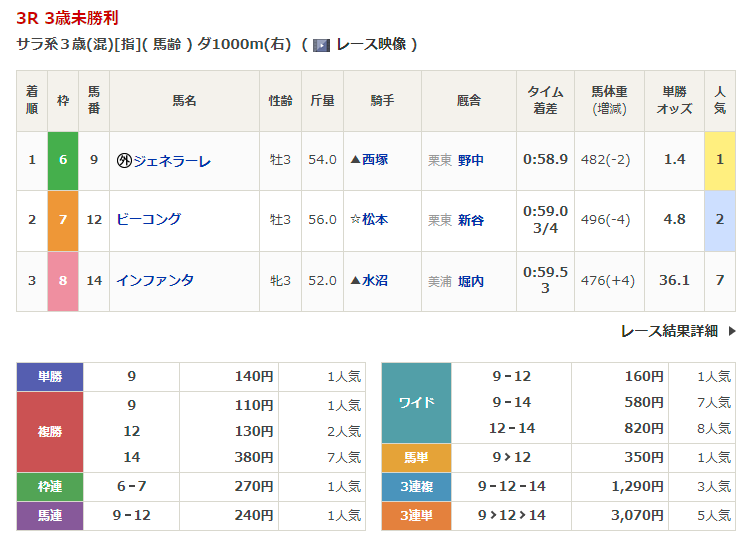 - 2/3【小倉3R】3歳未勝利