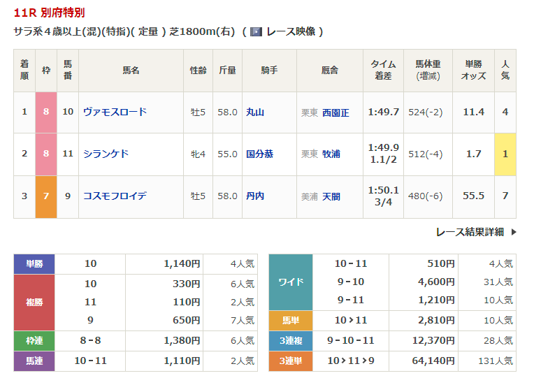 - 2/3【小倉11R】別府特別