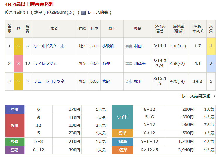 | 2/4 京都 | 12R | 5R | 41.7% |