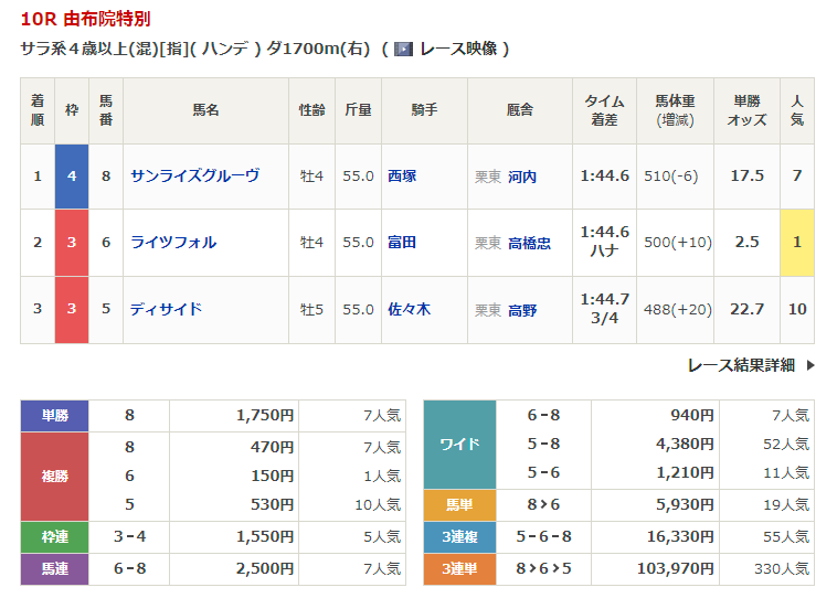 - 2/4【小倉10R】由布院特別