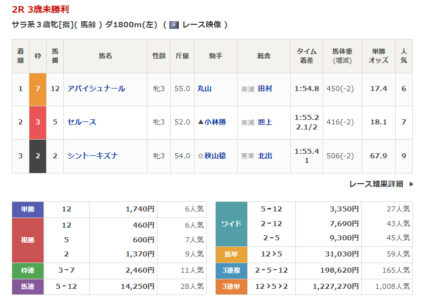 ◎アイルシャイン(4人気)1着 単勝530円、複勝150円