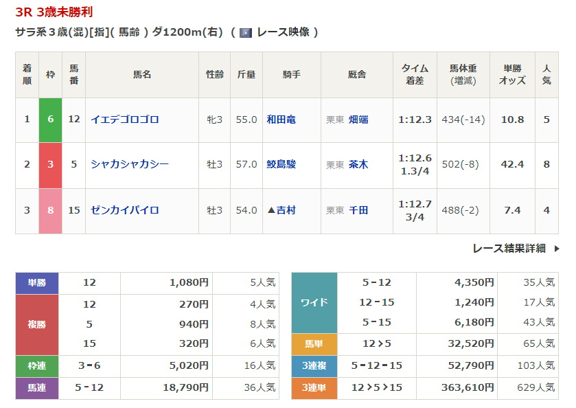 ◎ゼンカイパイロ(4人気)3着 複勝320円