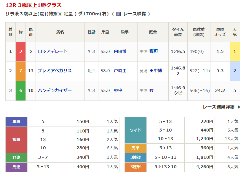 | 7/13 福島 | 12R | 6R | 50.0% |