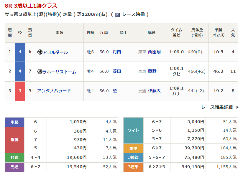 ◎ウインアルドーレ(3人気)2着 複勝210円