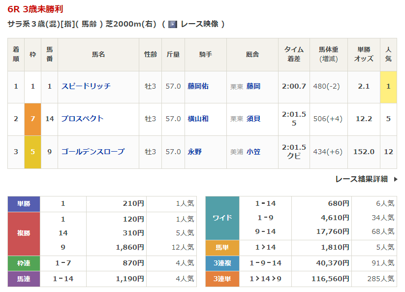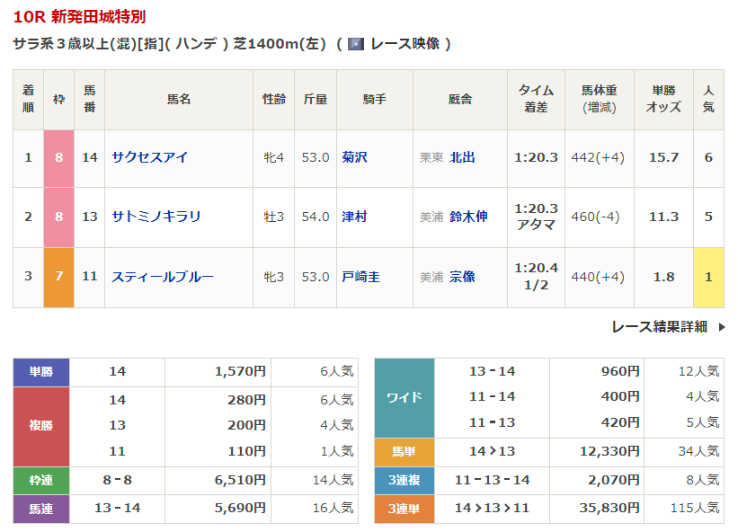 ◎サクセスアイ(6人気)1着 単勝1,570円、複勝280円