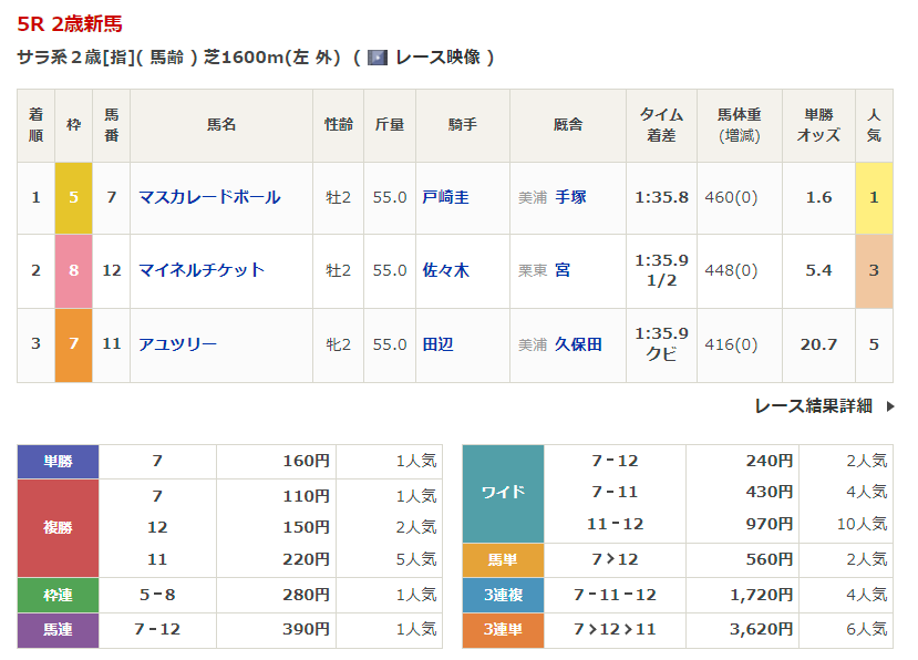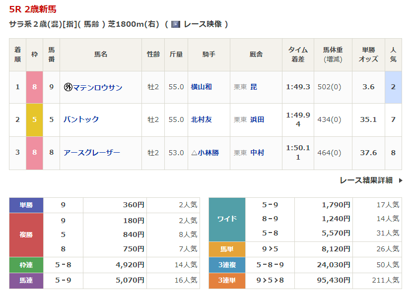 ◎サンマルミッション(8人気)2着 複勝560円 - 8/3【札幌5R】2歳新馬