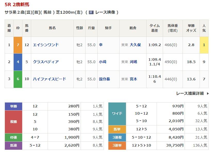 ◎セイウンビッグバン(3人気)2着 複勝140円 - 8/4【札幌2R】3歳未勝利