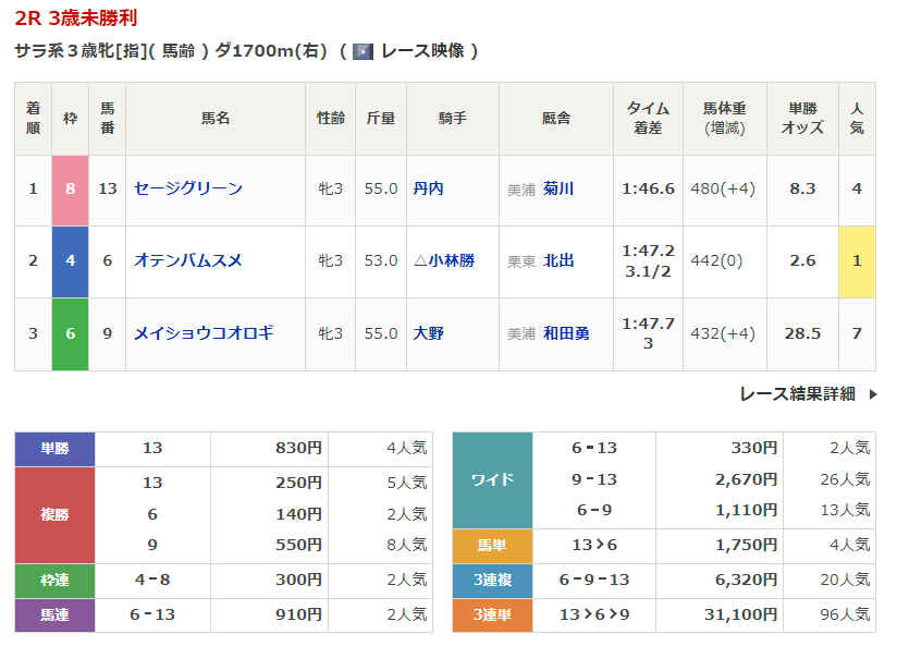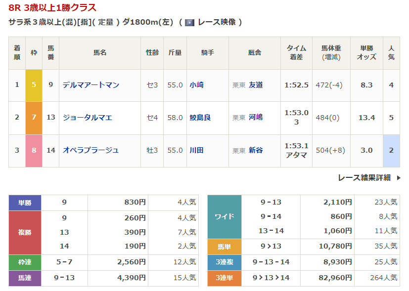 | 8/11 札幌 | 12R | 8R | 66.7% |