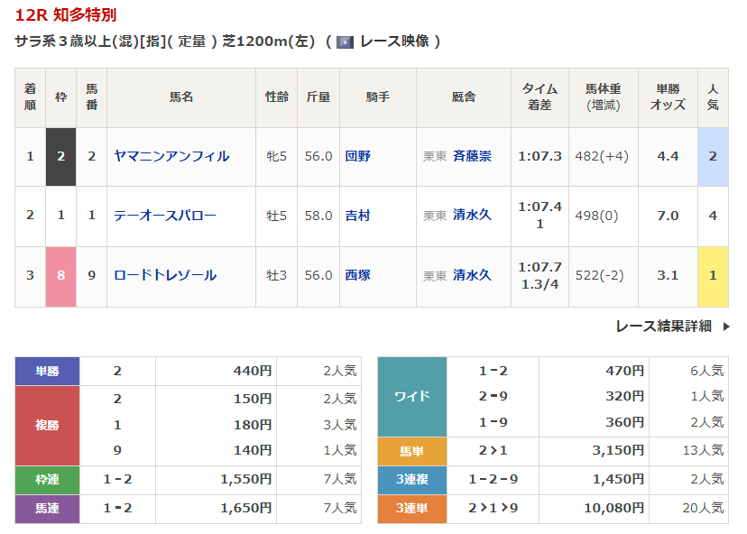 ◎ヤマニンアンフィル(2人気)1着 単勝440円、複勝150円