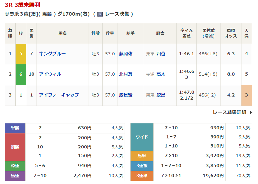 ◎メイショウコオロギ(7人気)3着 複勝550円