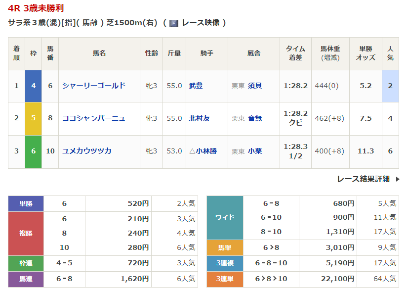 ◎ココシャンパーニュ(4人気)2着 複勝240円