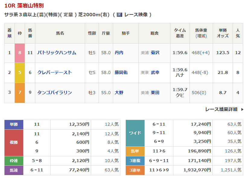 | 8/10 札幌 | 12R | 4R | 33.3% |