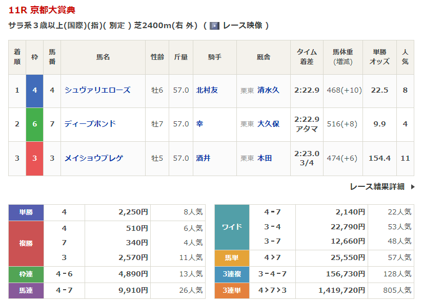 また先月は相手馬との組み合あわせで高配当に繋がるレースも複数ありました。以下は的中した一部のレースをご紹介します。
