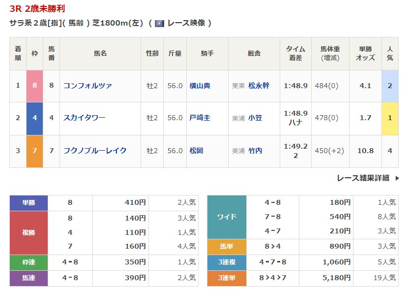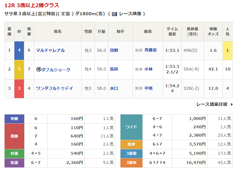 ◎フクノブルーレイク(4人気)3着 複勝160円