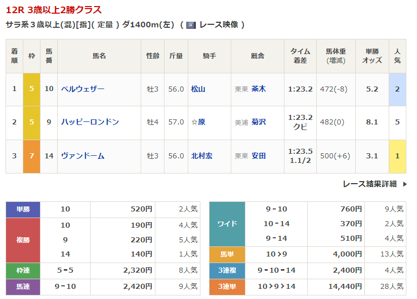 | 10/5 東京 | 12R | 4R | 33.3% |