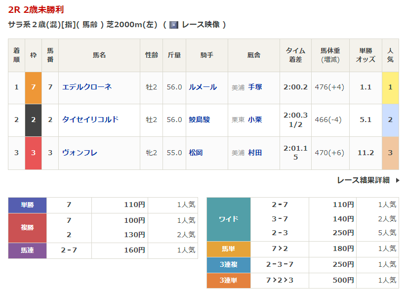 ◎ヴーレヴー(3人気)1着 単勝500円、複勝180円