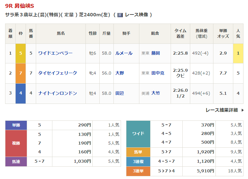 ◎ハッピーロンドン(5人気)2着 複勝220円