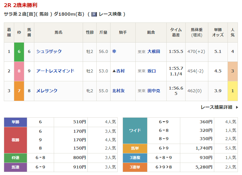 ◎シュラザック(4人気)1着 単勝510円、複勝170円
