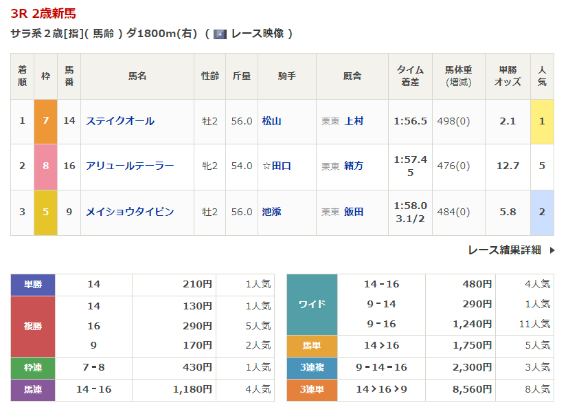 ◎ショウナンアトレ(5人気)2着 複勝330円