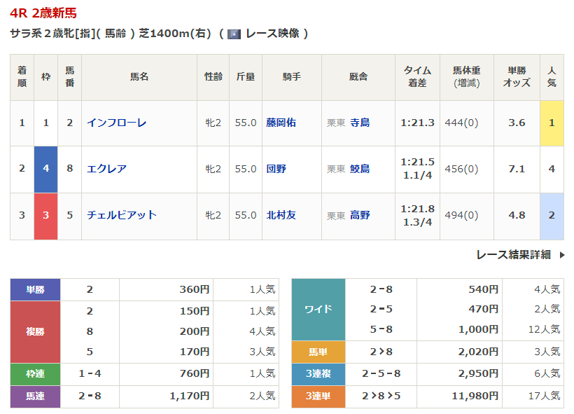 ◎エンプレスフレーム(5人気)2着 複勝310円