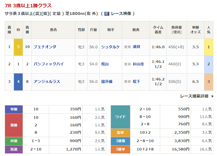 ◎アンジョルラス(3人気)3着 複勝230円 - 10/6【京都9R】長岡京ステークス