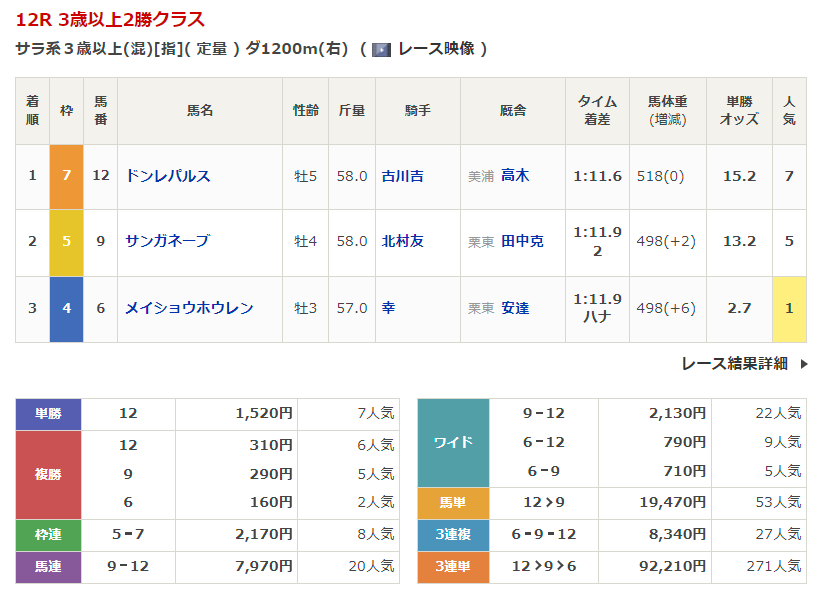 ◎ドンレパルス(7人気)1着 単勝1,520円、複勝310円
