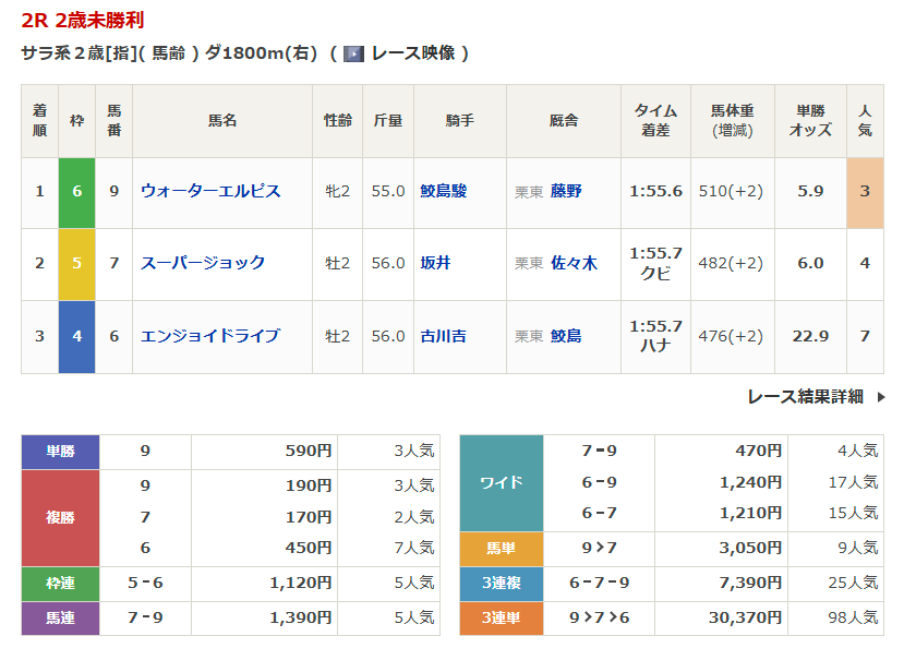 ◎サードウインド(6人気)2着 複勝590円 - 11/9【福島3R】2歳未勝利
