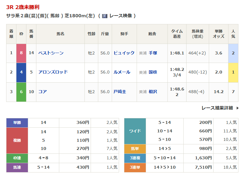 ◎マキシマムビスタ(6人気)3着 複勝450円