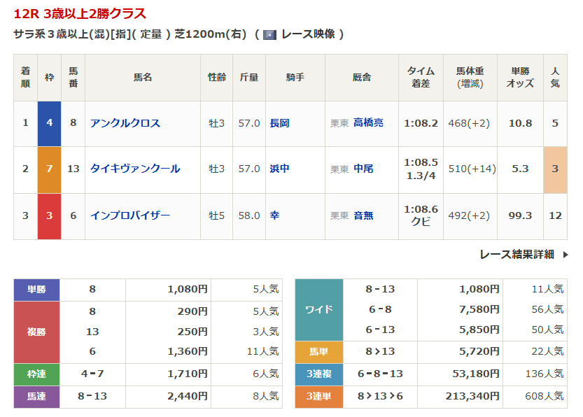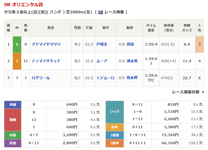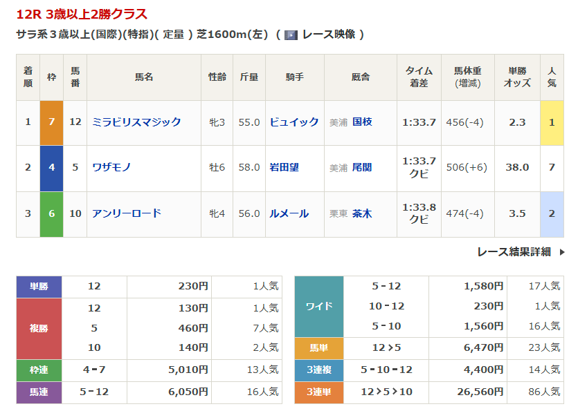 | 11/23 東京 | 12R | 6R | 50.0% |