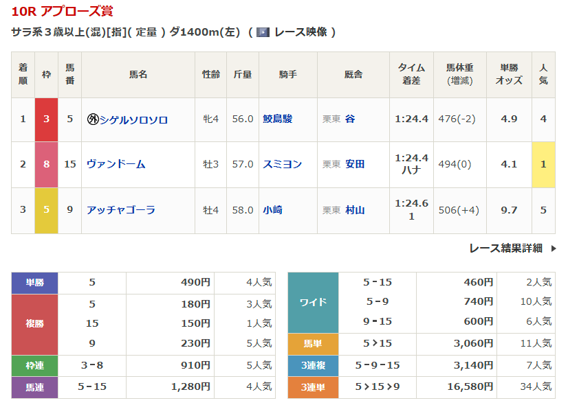 ◎アッチャゴーラ(5人気)3着 複勝230円