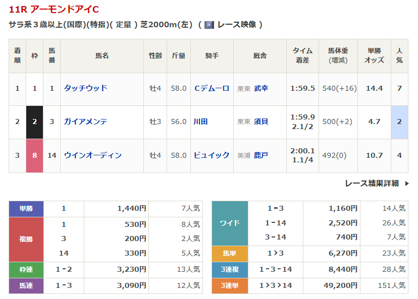 その他、先週は相手馬との組合わせでも高配当の的中がありました。