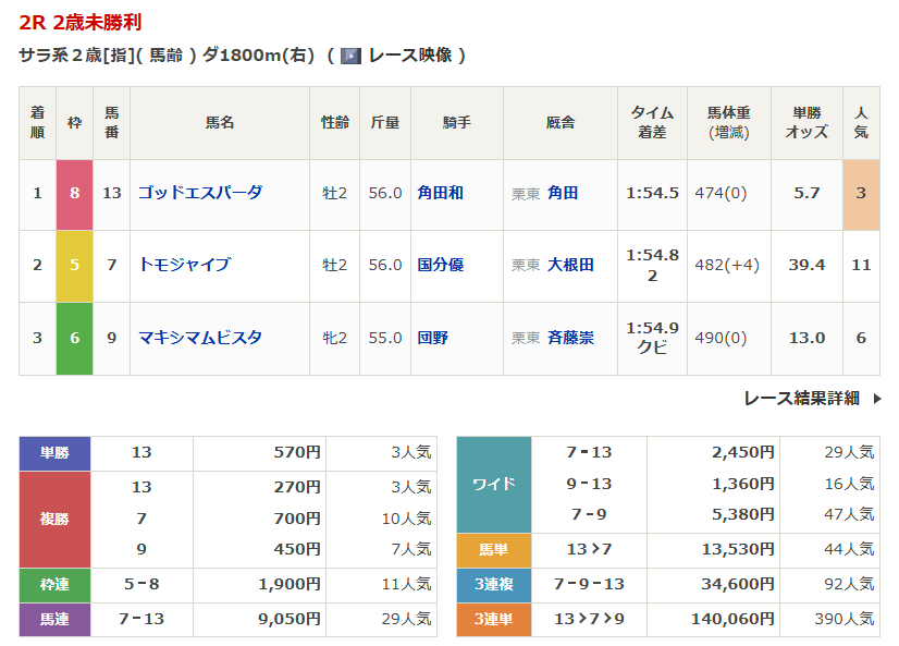 ◎6ユウトザレン 牡2 54.0 吉村誠之助