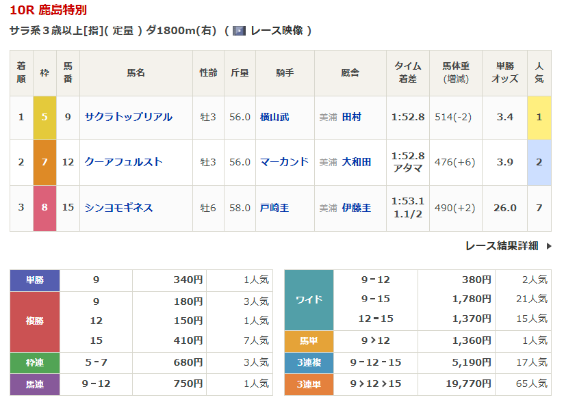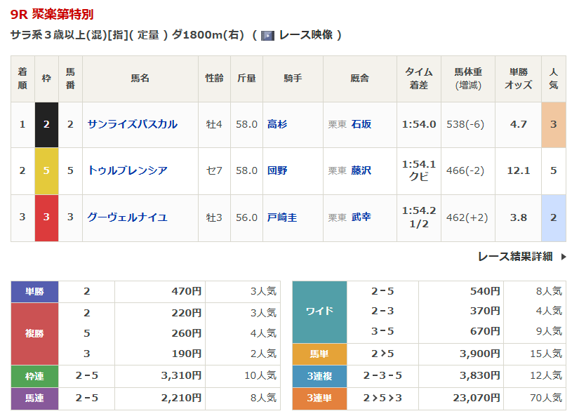 ◎トゥルブレンシア(5人気)2着 複勝260円