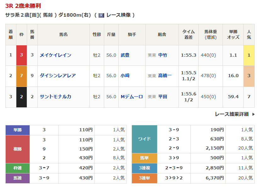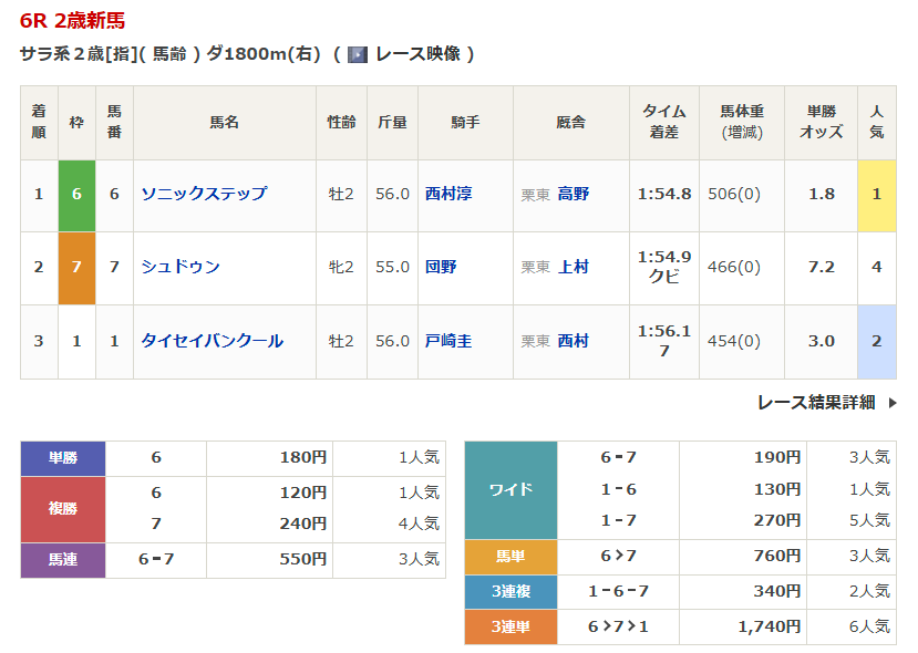 ◎シュバルツマサムネ(7人気)1着 単勝3,110円、複勝350円 - 11/23【京都6R】2歳新馬