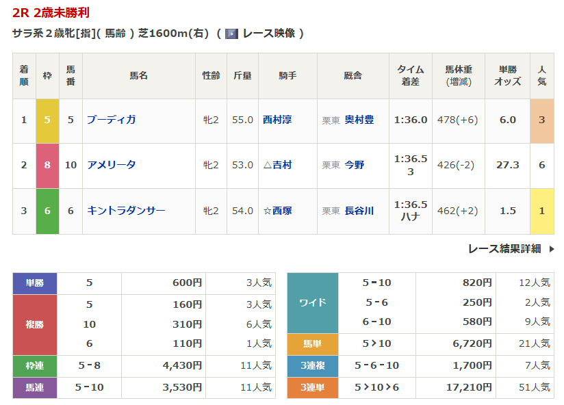 ◎アメリータ(6人気)2着 複勝310円 - 12/1【京都6R】2歳新馬