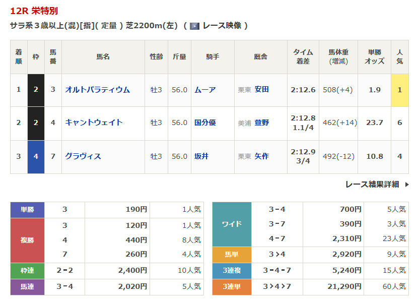 ◎ドゥラエレーデ(9人気)3着 複勝560円