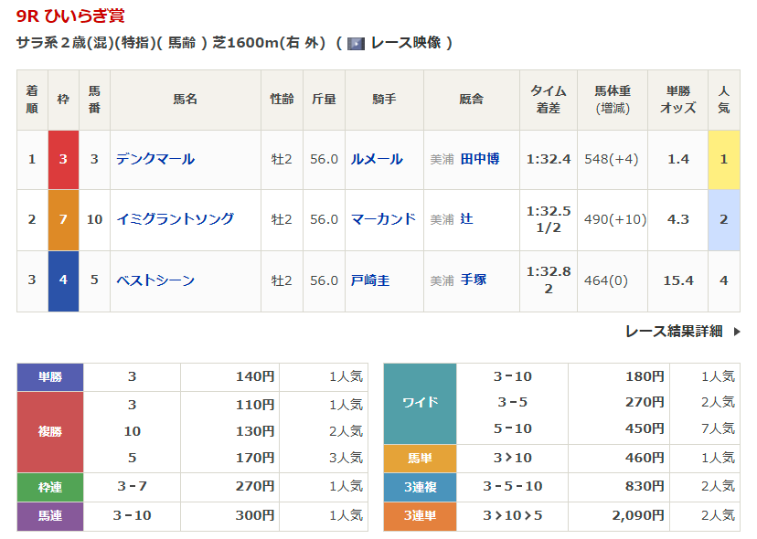 ◎ブルーミンデザイン(9人気)2着 複勝640円