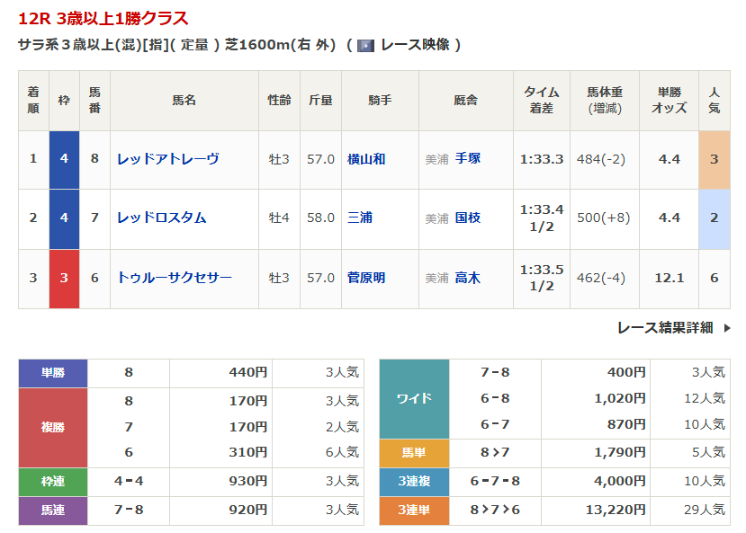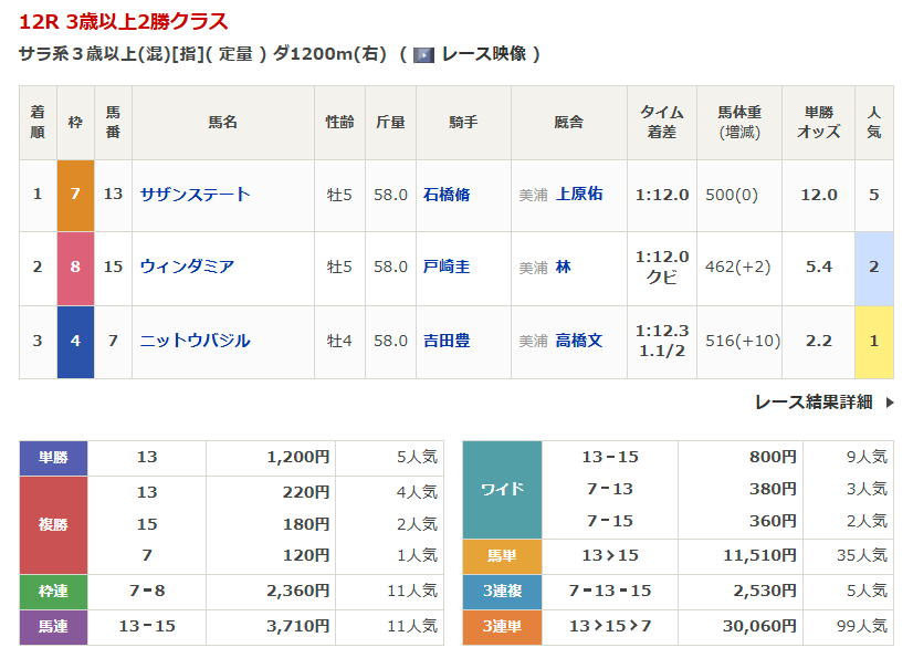 | 12/15 京都 | 12R | 2R | 16.7% |