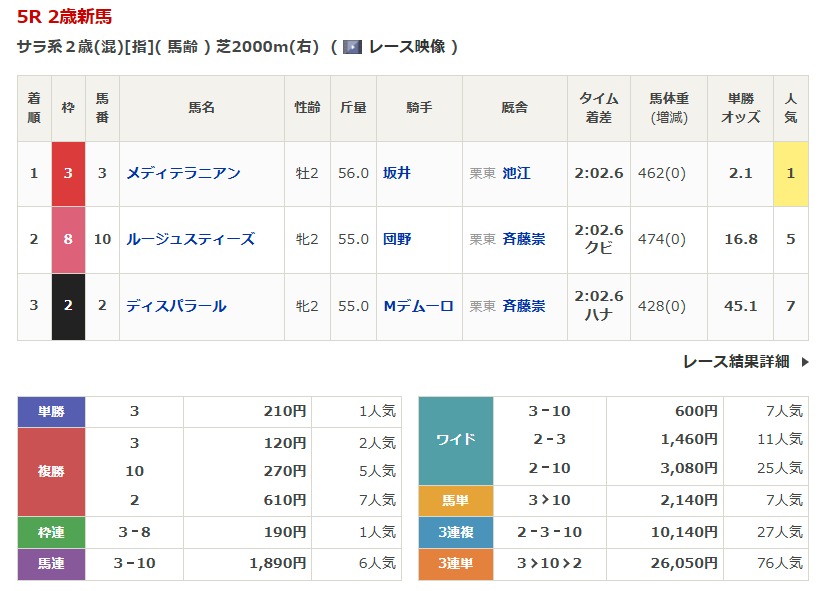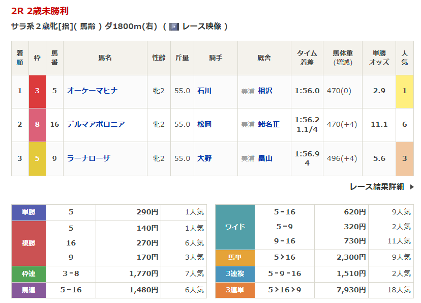 ◎デルマアポロニア(6人気)2着 複勝270円 - 12/15【中山3R】2歳未勝利