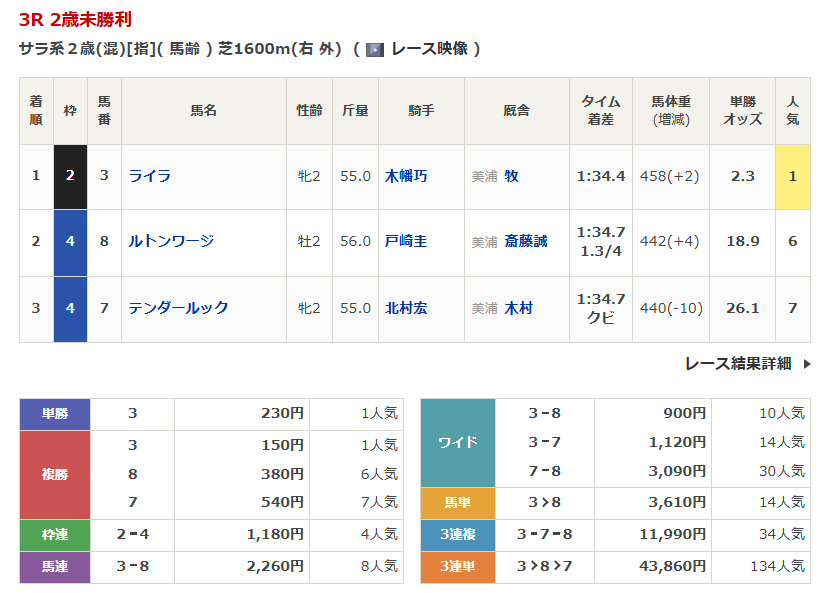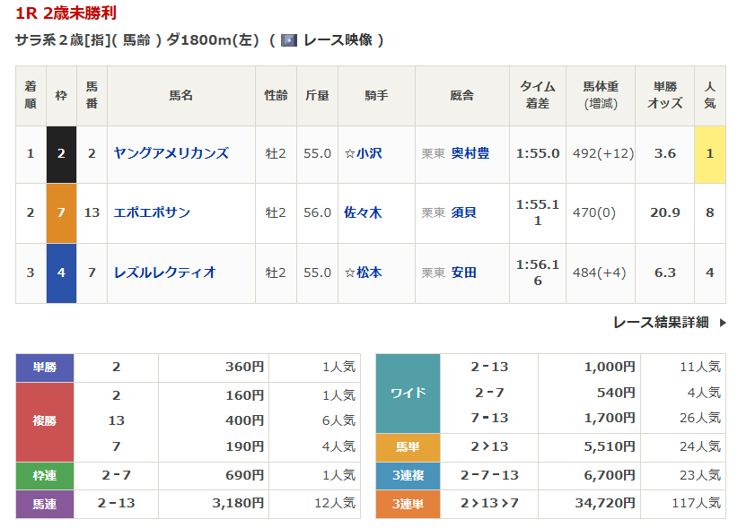 ◎インディゴブラック(6人気)1着 単勝1,560円、複勝630円 - 12/14【京都5R】2歳新馬