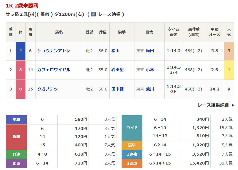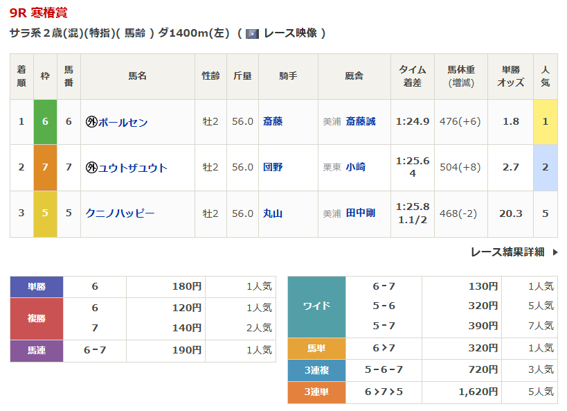 | 12/14 京都 | 12R | 6R | 50.0% |