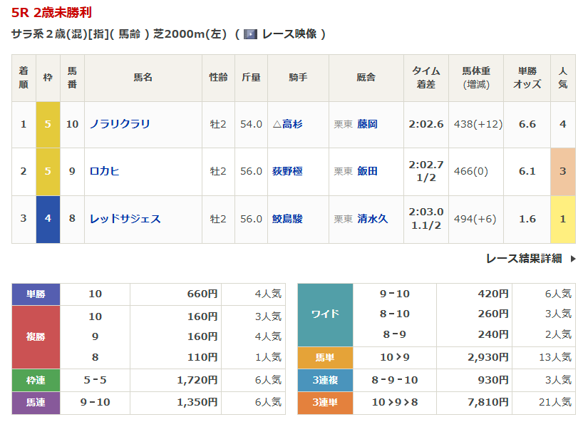 ◎ノクナレア(9人気)1着 単勝3,980円、複勝1,010円