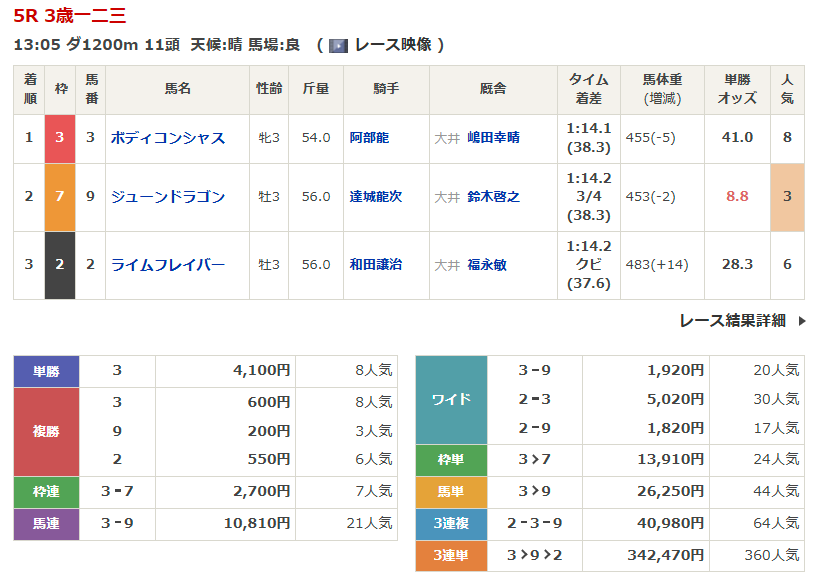 ◎ボディコンシャス(8人気)1着 単勝4,100円、複勝600円