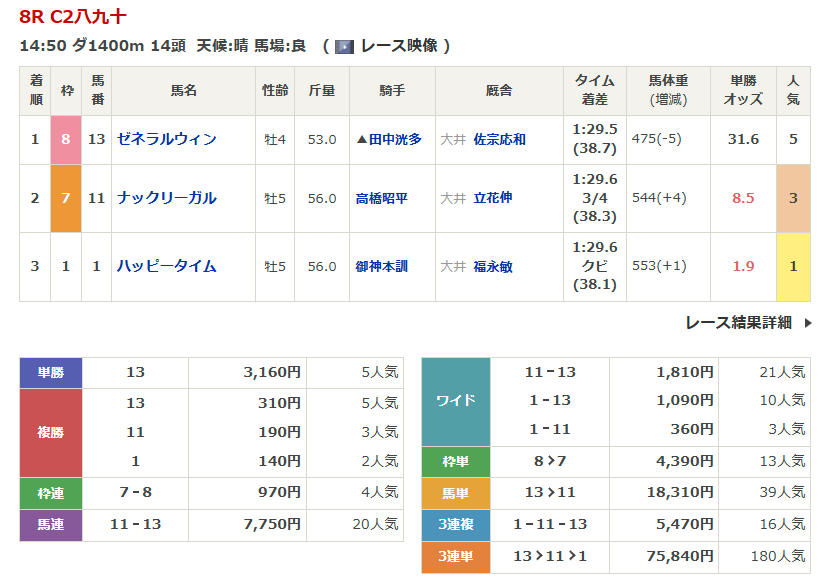 ◎ゼネラルウィン(5人気)1着 単勝3,160円、複勝310円