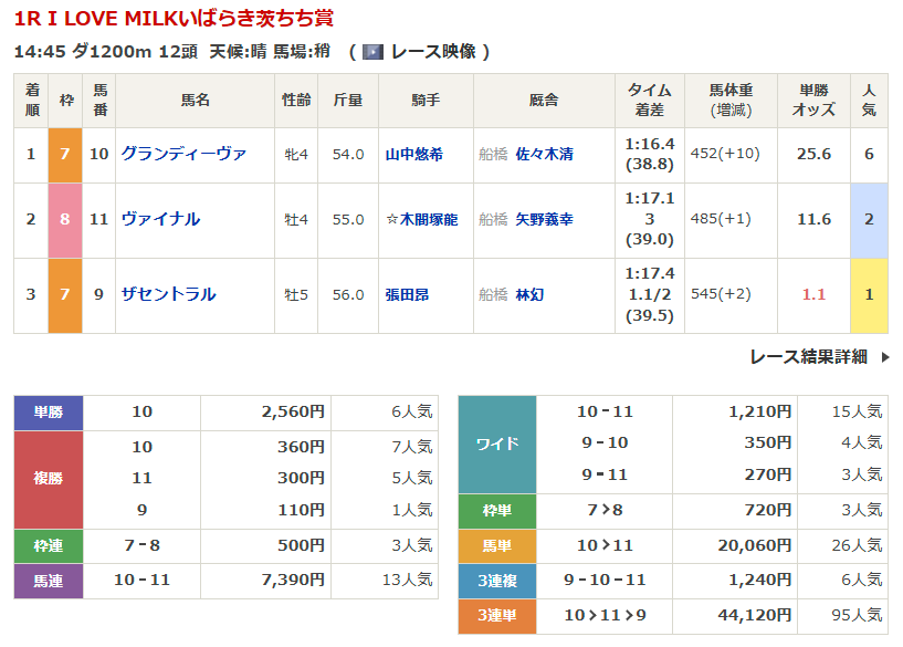 - 1/20【船橋1R】I LOVE MILKいばらき茨ちち賞