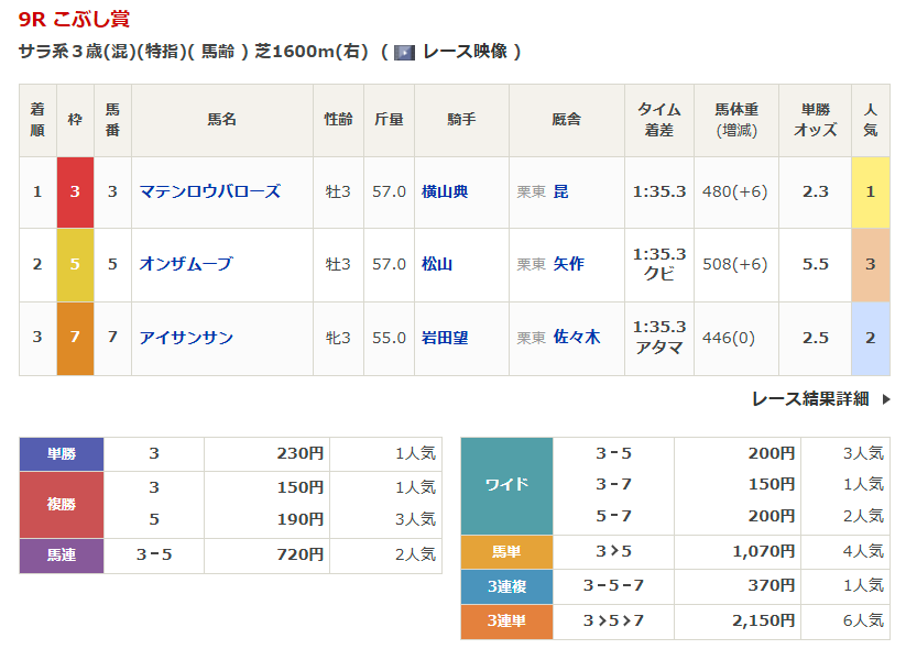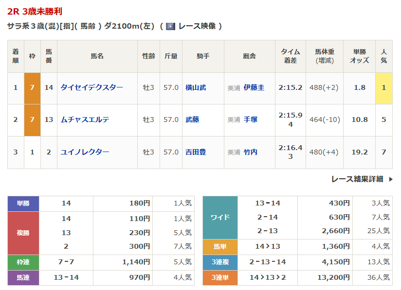 ◎コンテナワールド(2人気)1着 単勝390円、複勝150円 - 2/2【小倉6R】3歳未勝利