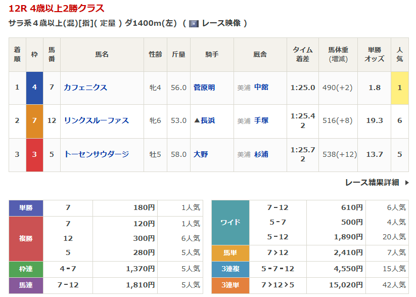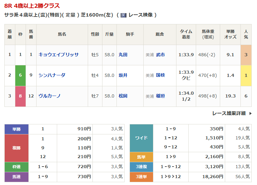 | 2/16 京都 | 12R | 6R | 50.0% |
