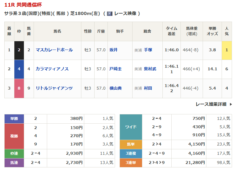 ◎ハーバードスクエア(5人気)3着 複勝220円
