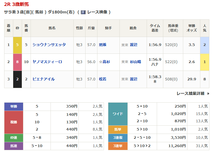 ◎リサリサ(6人気)2着 複勝280円 - 2/2【京都3R】3歳未勝利