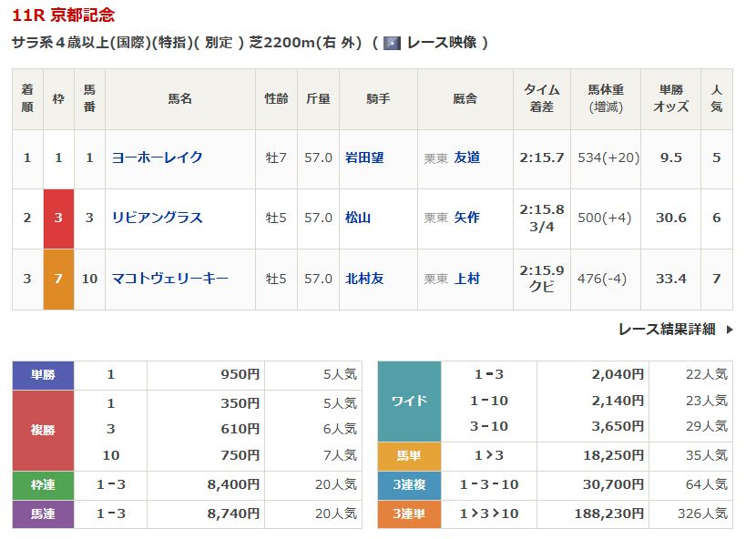 ◎ケリフレッドアスク(4人気)3着 複勝240円 - 2/16【京都11R】京都記念